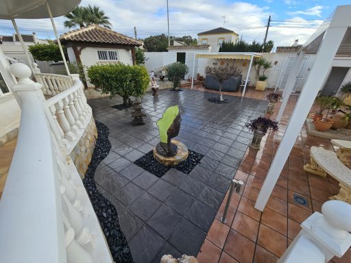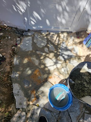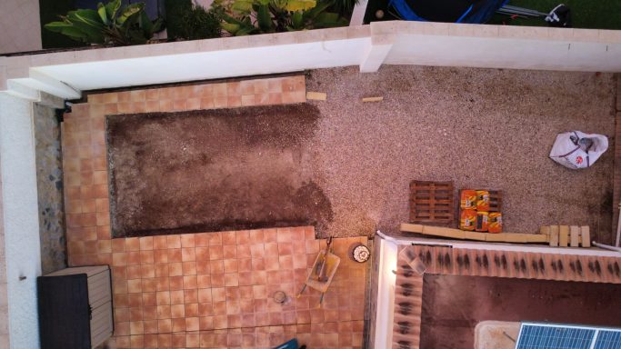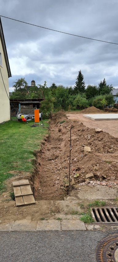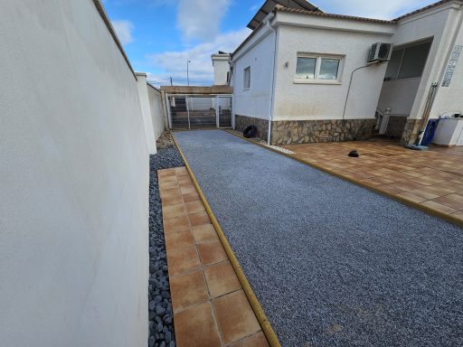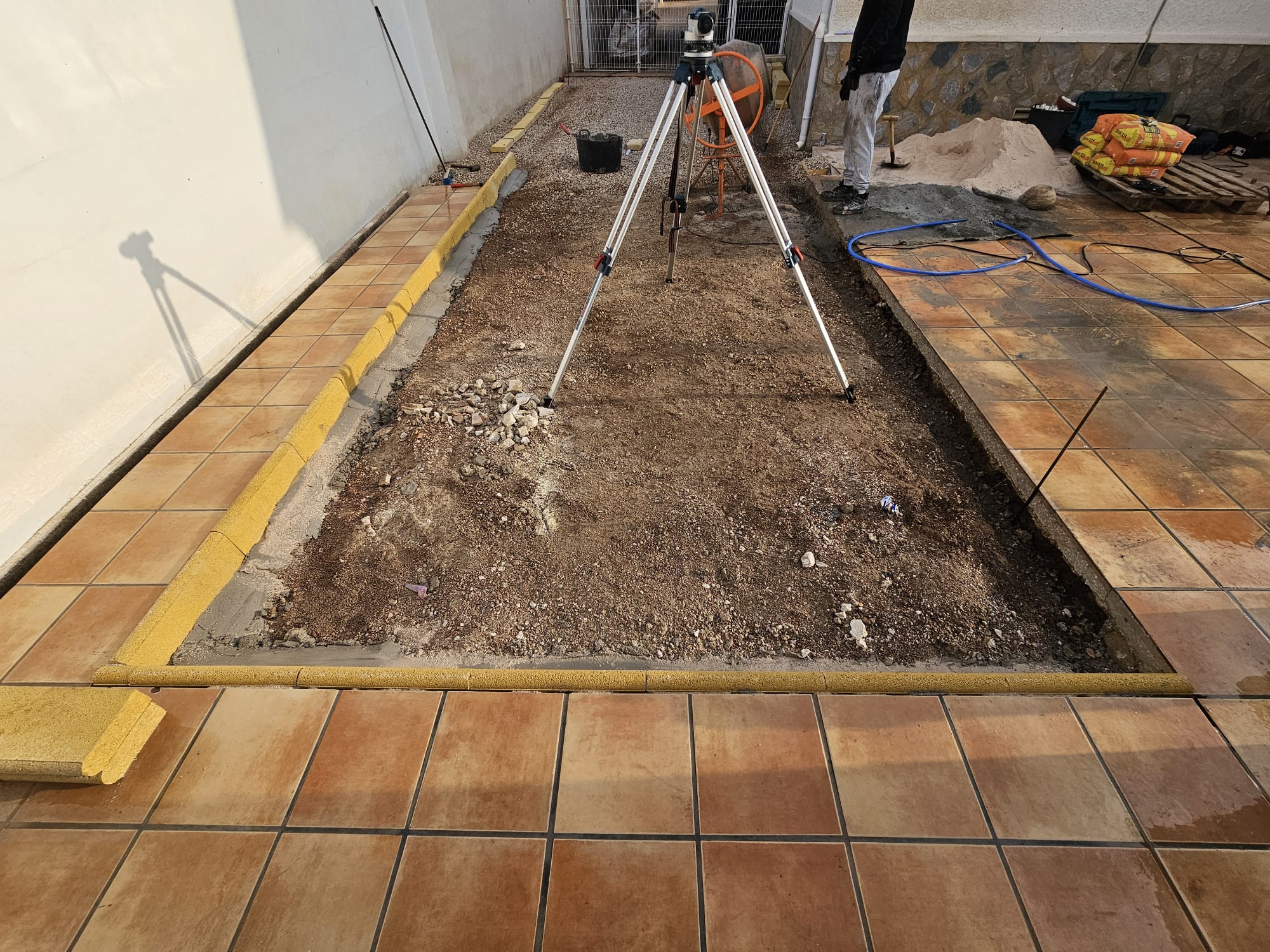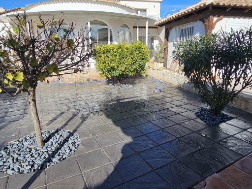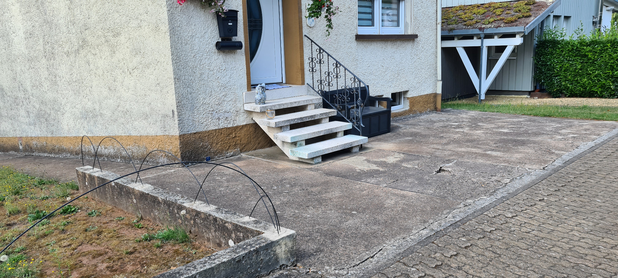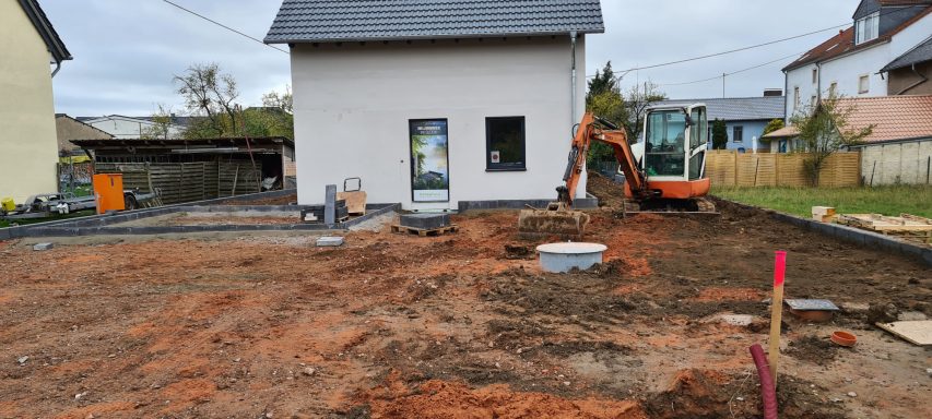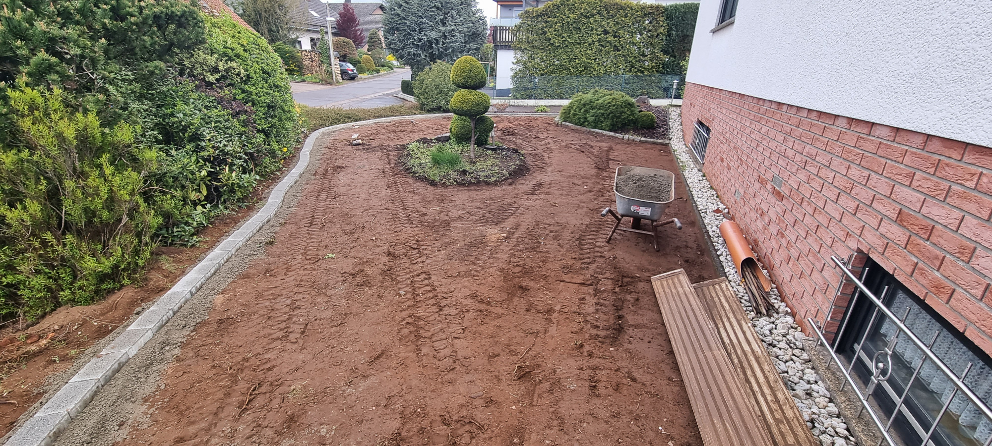 Betonfläche entfernen, Unterbau erstellen und Verbundsteine verlegen