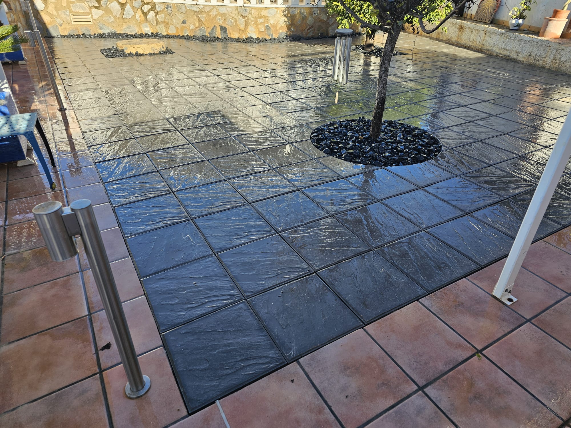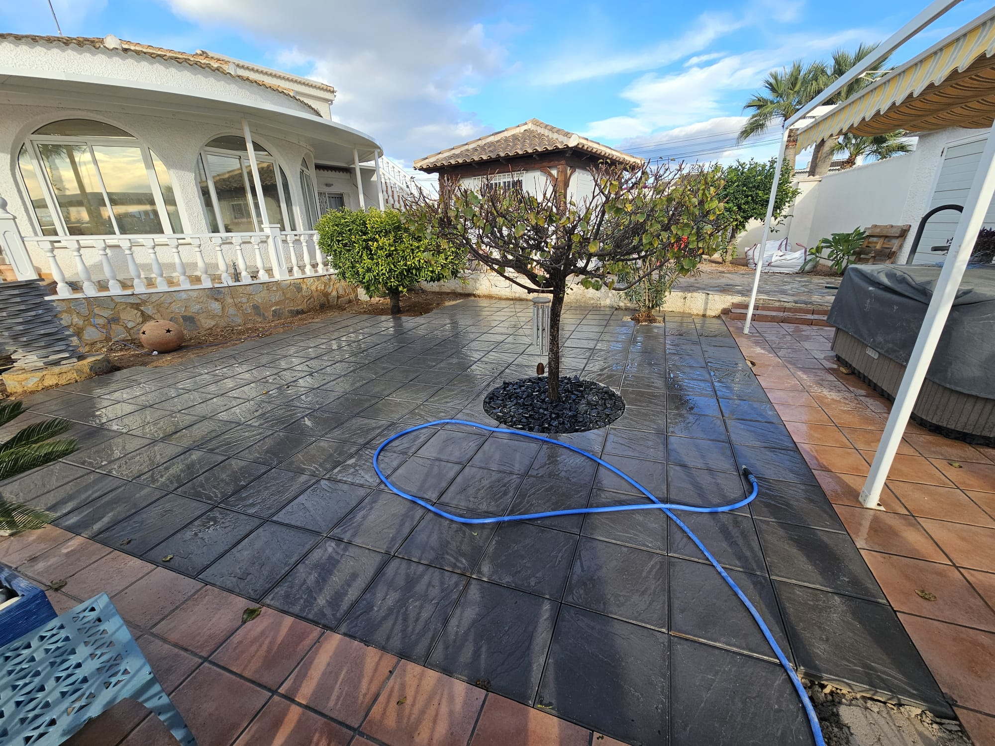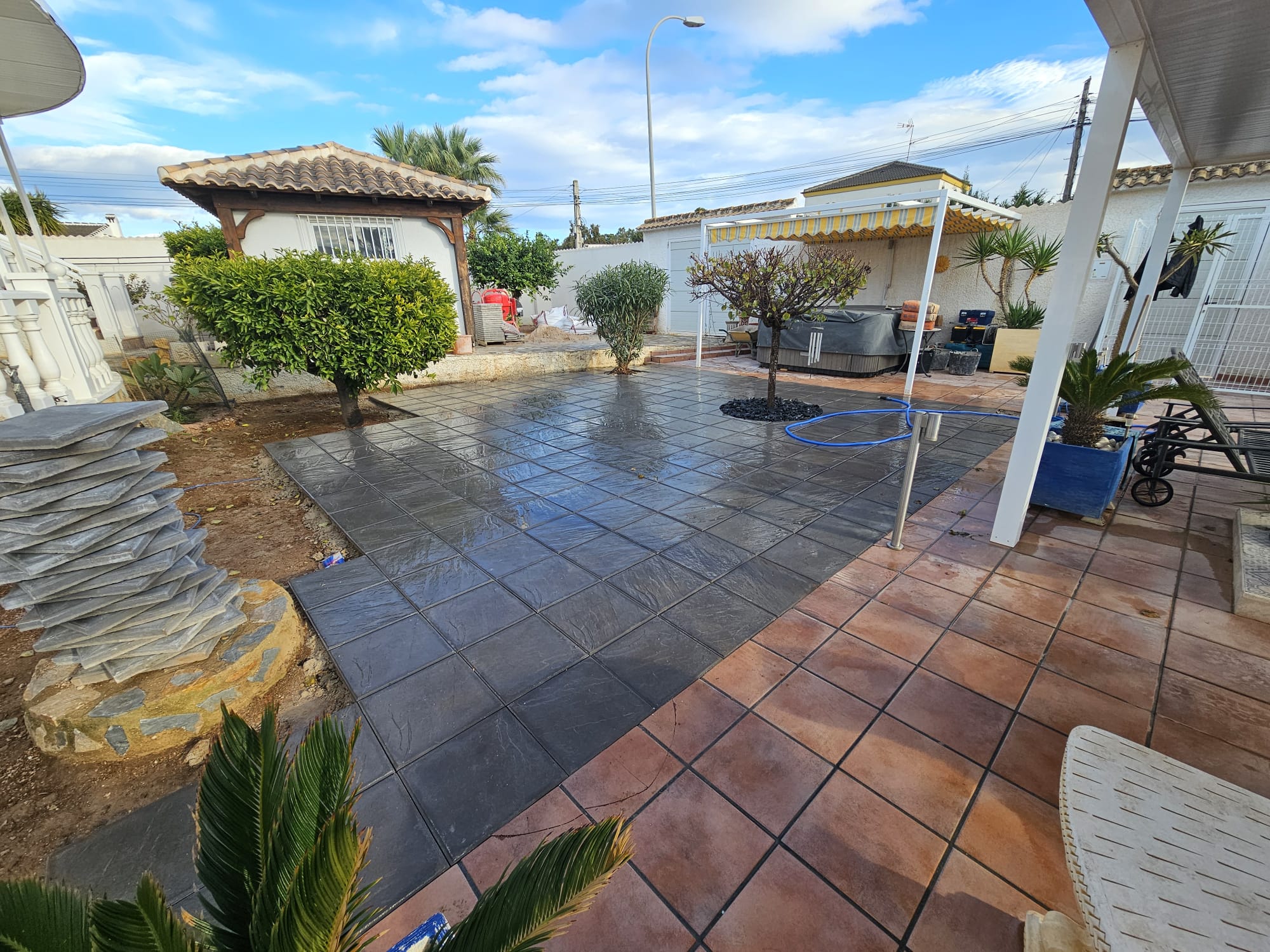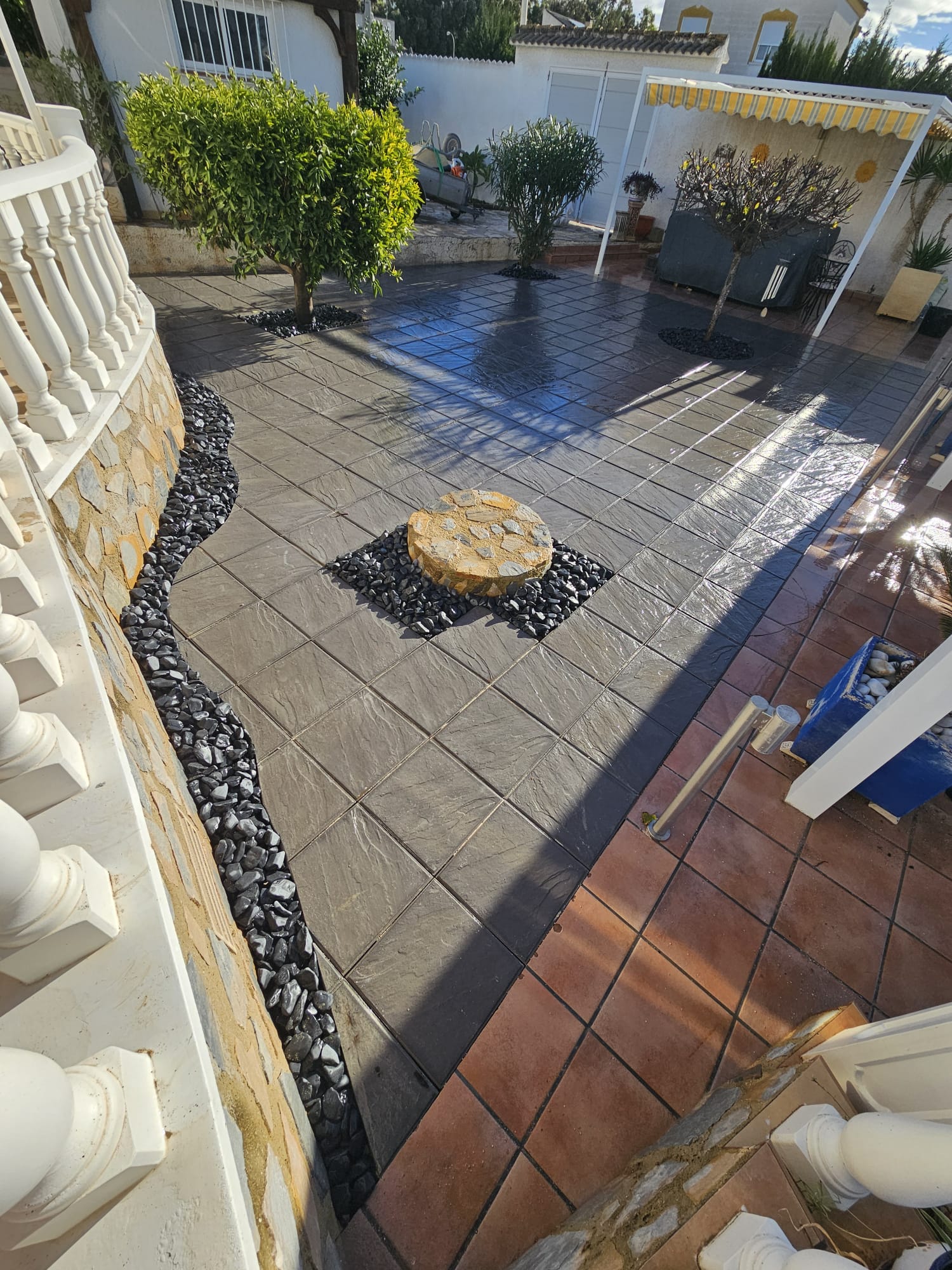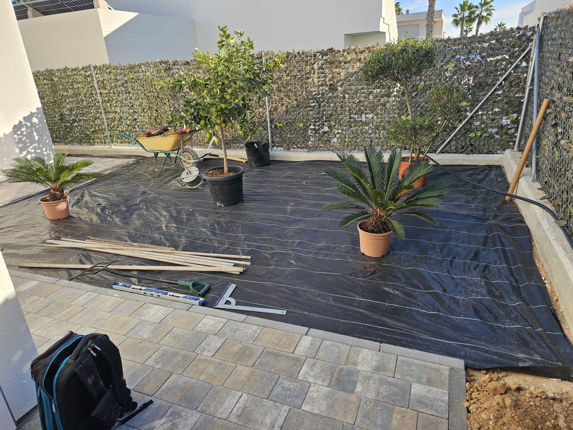 Betonfläche entfernen, Unterbau erstellen und Verbundsteine verlegen