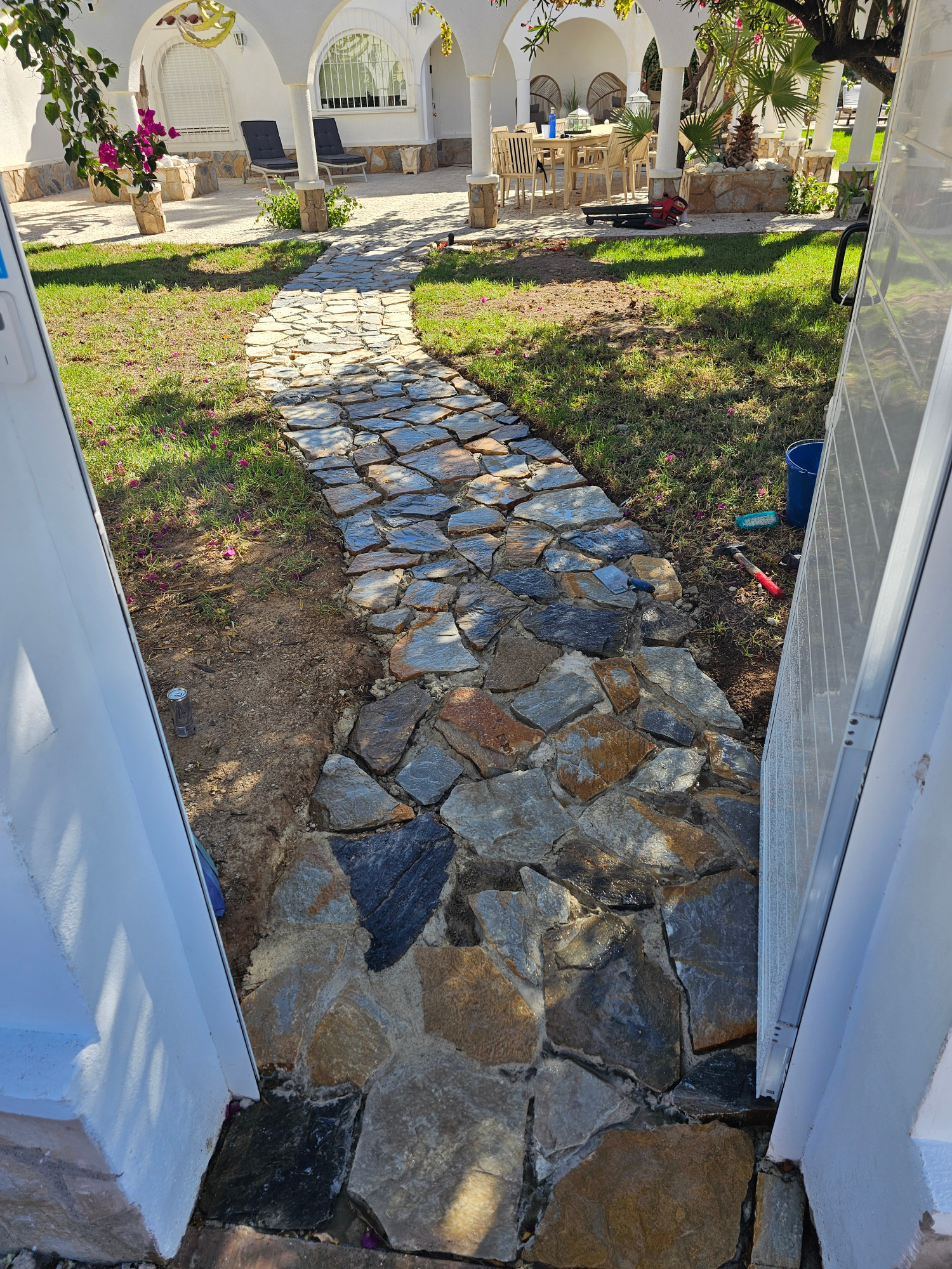 Terassen- und Gehwegbau mit Bepflanzug inclusive automatischer Bewässerung.